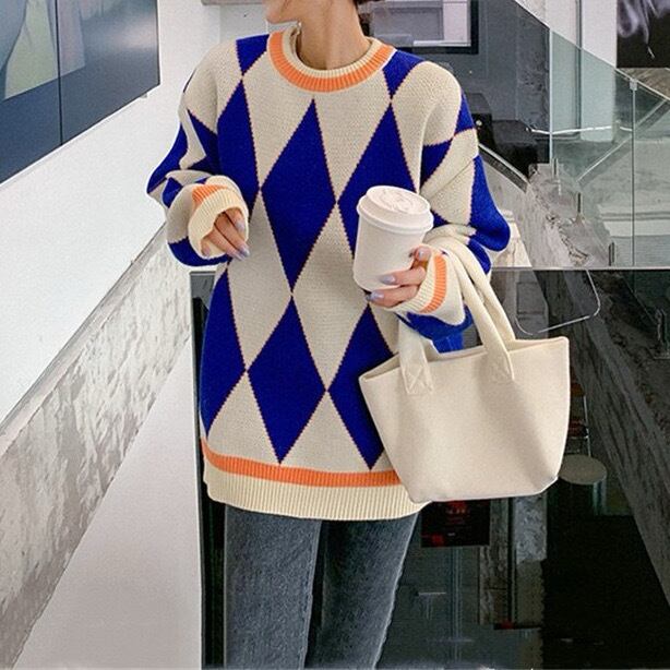 目立つこと間違いなしの個性的カラーリングに、ダイヤ柄が特徴のアイテムです。