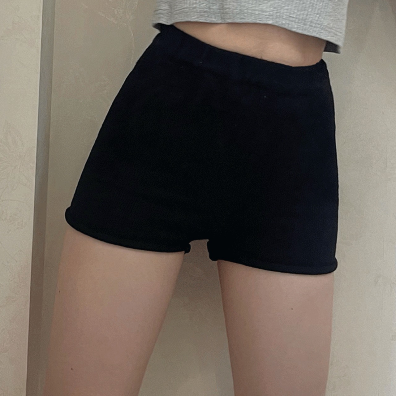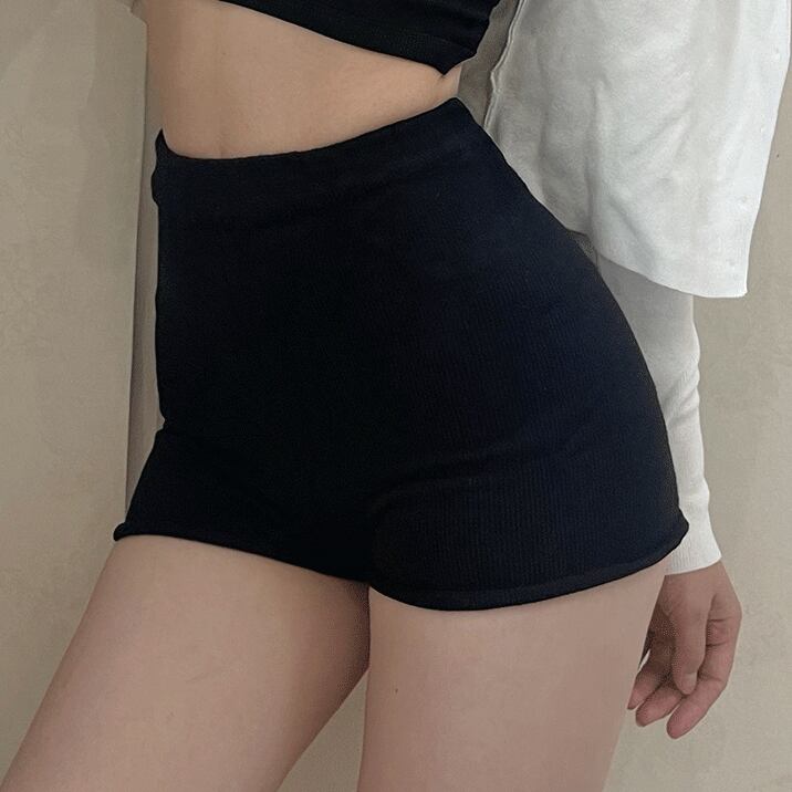 ハイウエストデザインが特徴で、ウエスト部分にはゴムが施されており、快適な着心地を実現しています。