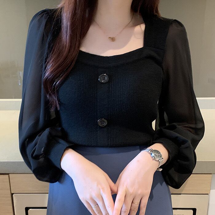 透け感のあるシアー×パフスリーブが可愛らしさを演出し