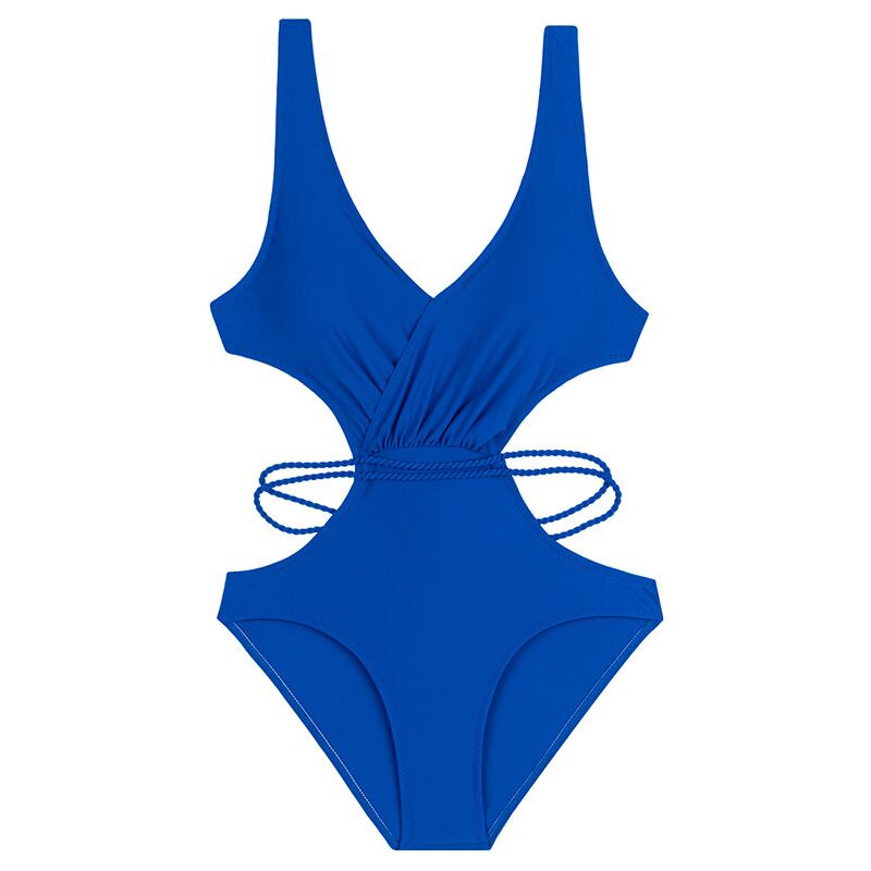 ノンワイヤーでパッド付きのため、快適な着心地を実現しました。ハイレグ仕様で脚長効果も抜群。ウエストマークが、スタイルを引き締めるポイントです。シンプルながら存在感のあるデザインは、リゾートやビーチの主役になること間違いなしです!