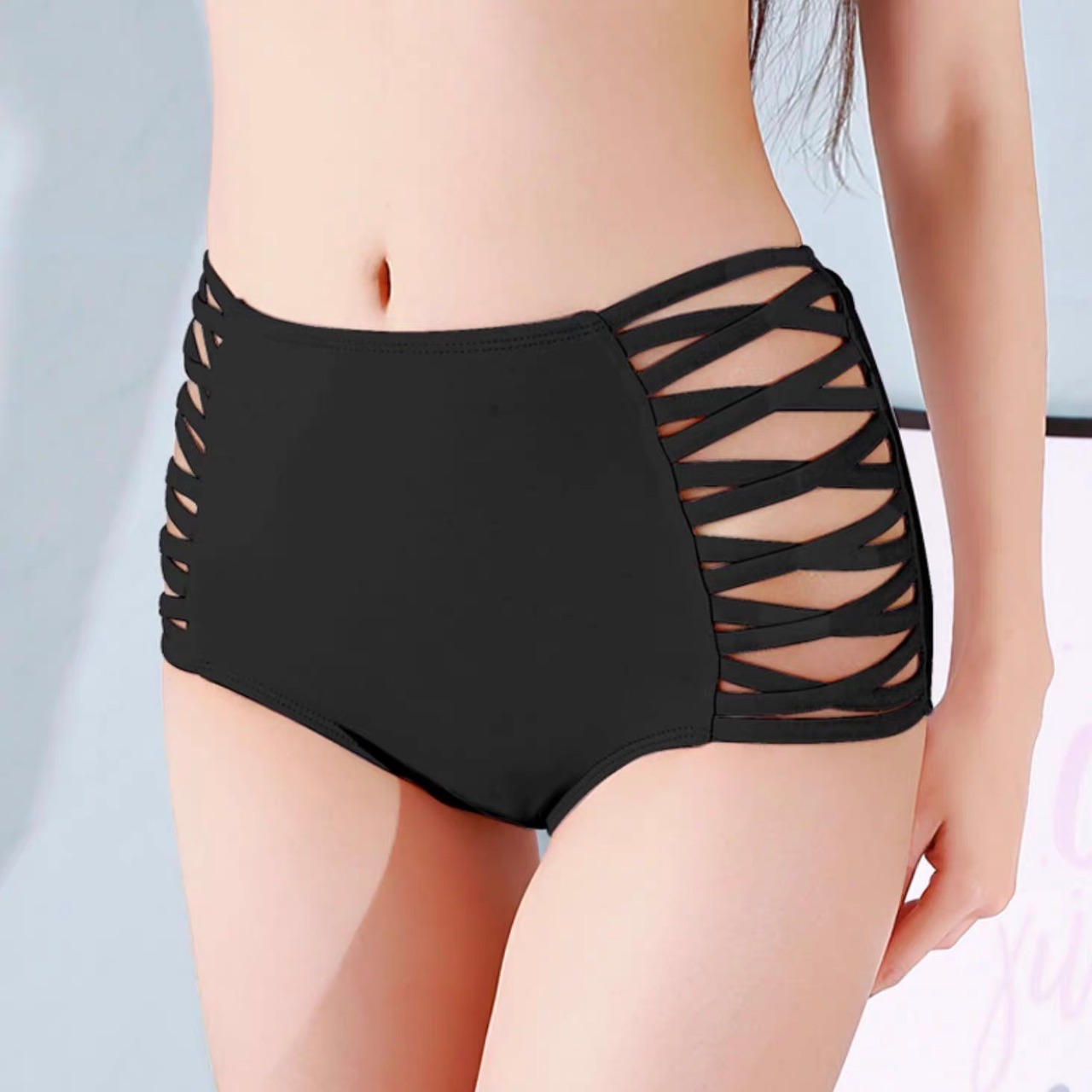ハイウエスト×編み込みデザインで脚長&こなれ感を演出。
