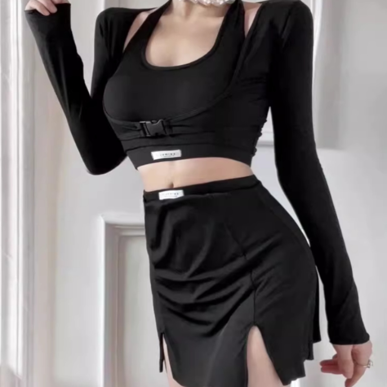 体型カバーを重視した長袖セパレートタイプの水着3点セット