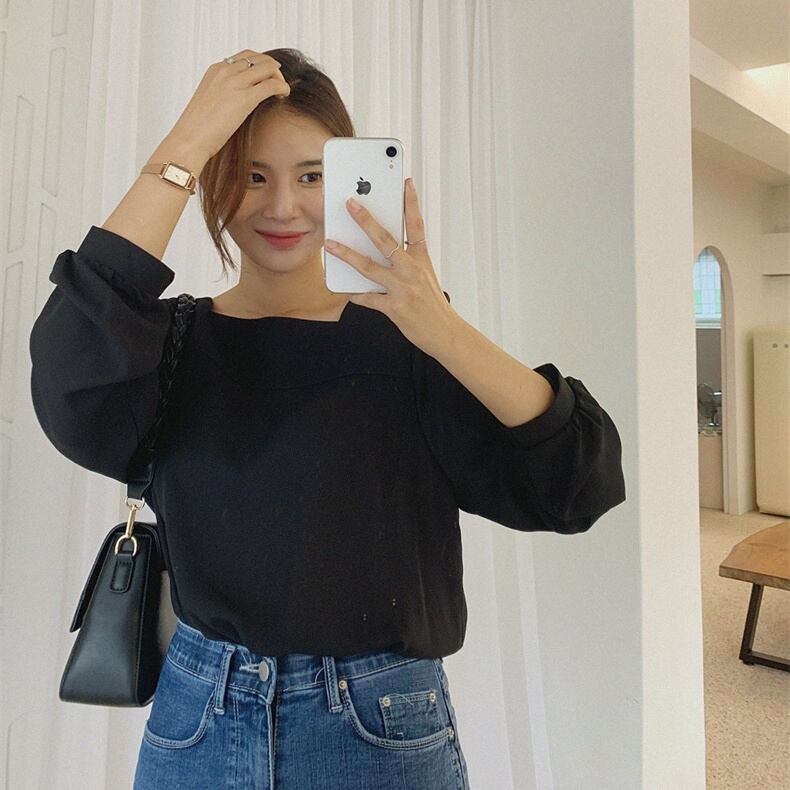 フェミニンでかわいい印象を与えるスクエアネックブラウス!