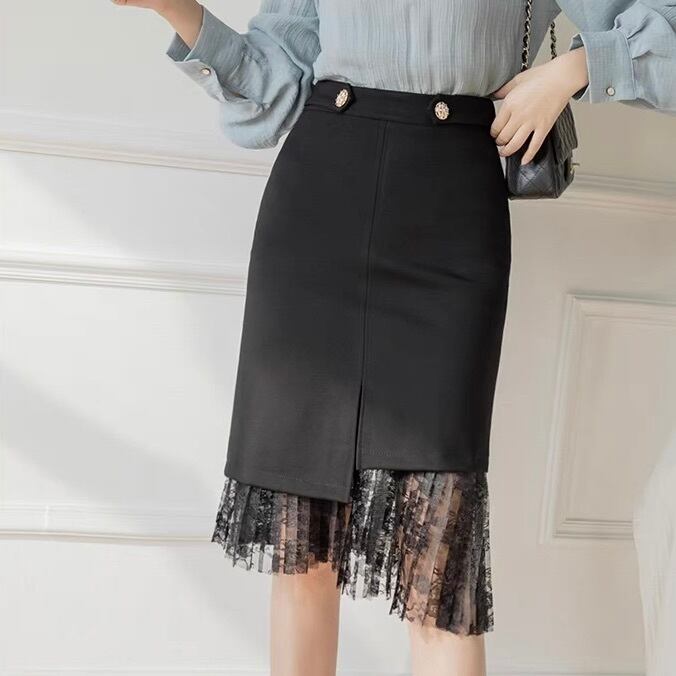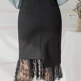 ドラマチックなレースと刺繍で魅せるアシンメトリータイトスカート。