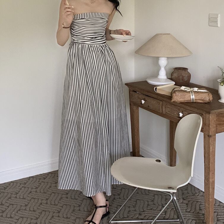 ボーダー×ストライプの切り替えデザインがオシャレなアイテムです。