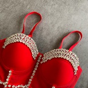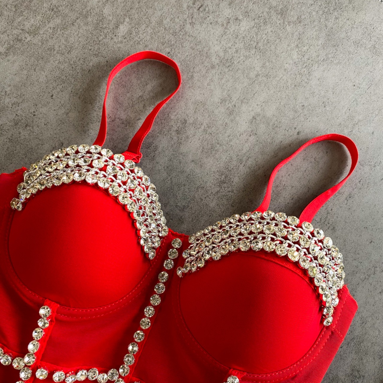 たくさんのキラキララインストーン×シルバーチェーンが華やかさを演出してくれます。