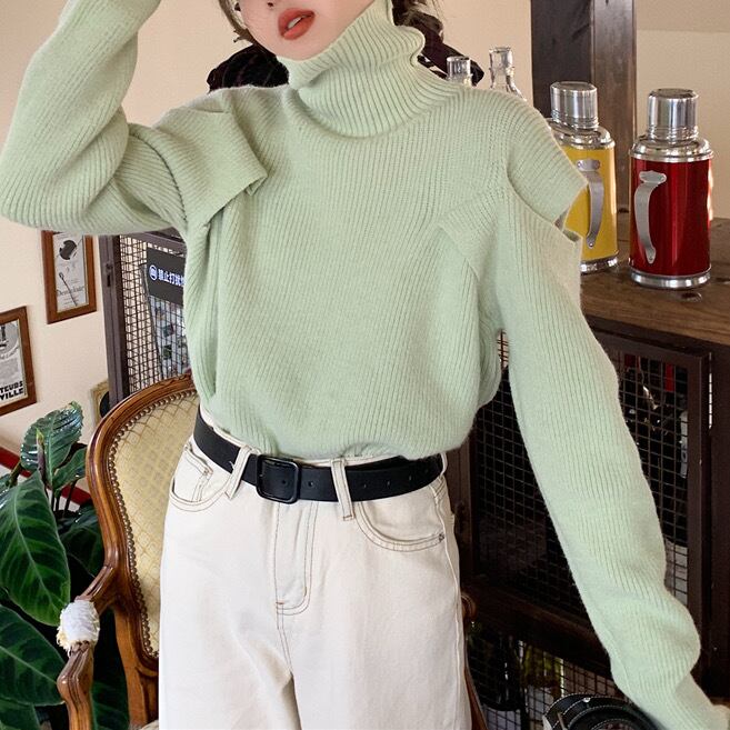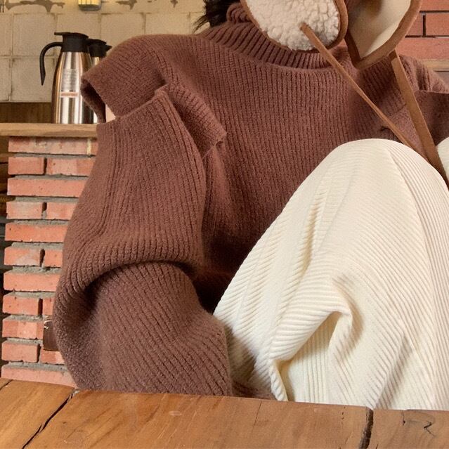 タートルネック×リブニットが大人のこなれたスタイルにぴったりです。