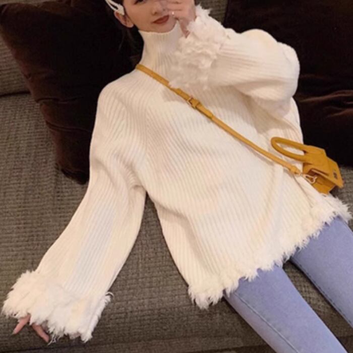 ふわふわの手触りとボリューム袖が大人可愛いデザインです