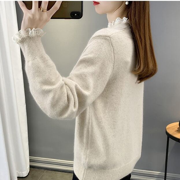 ミディアム丈とレースのデザインが特徴で、シンプルながらも上品な印象を与える一着です。