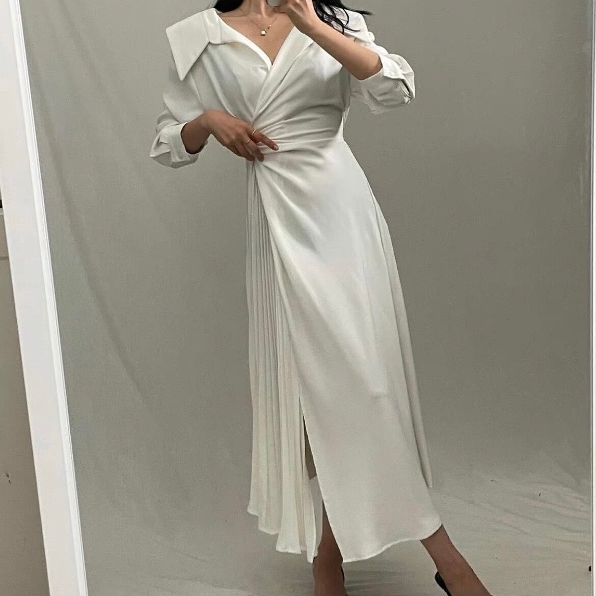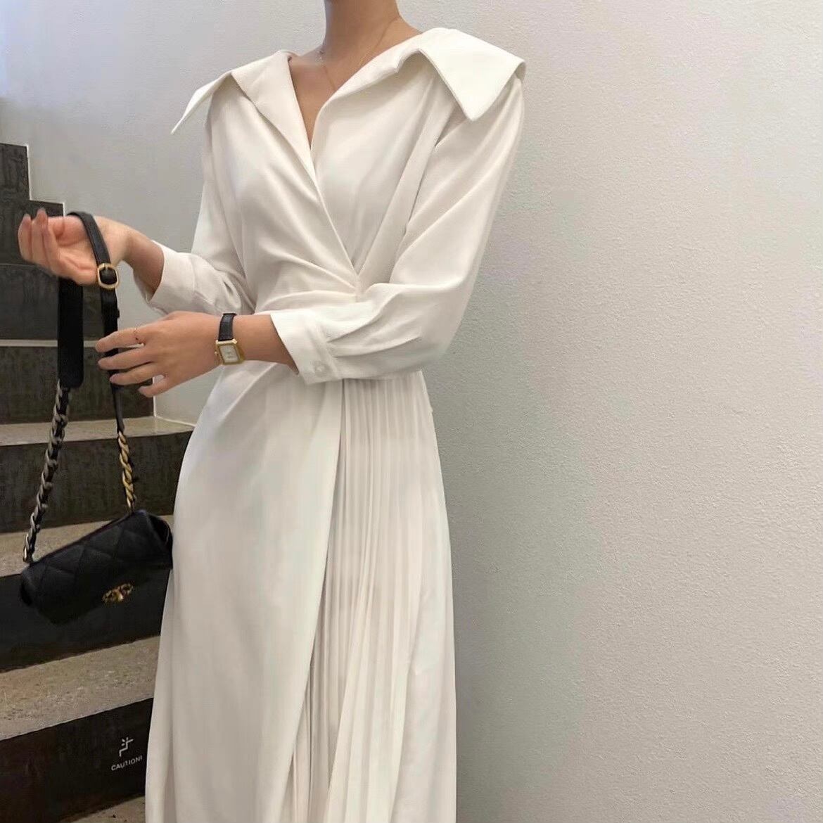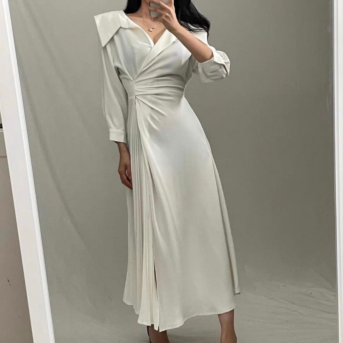 エレガントに差がつくカシュクールデザインのシャツワンピース。