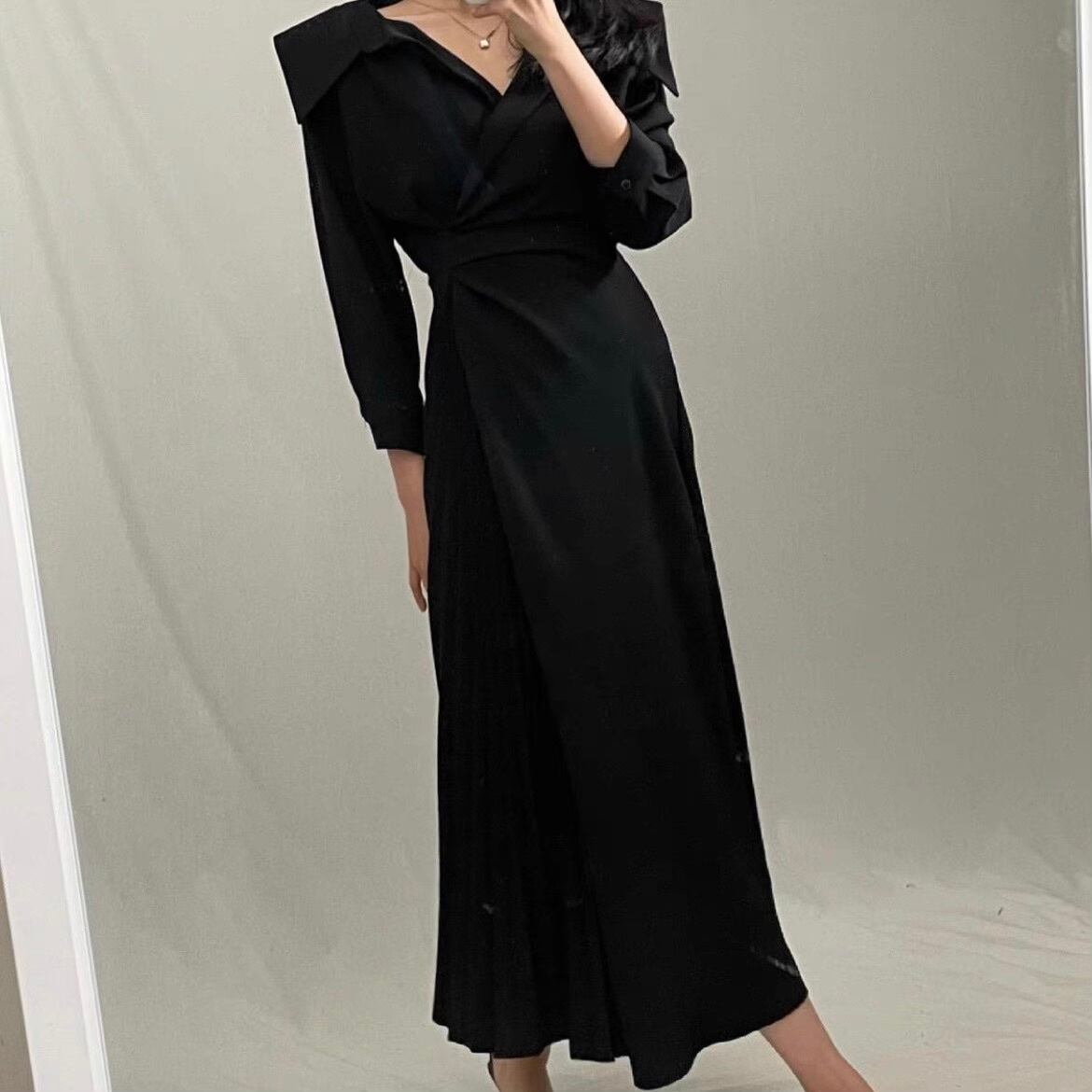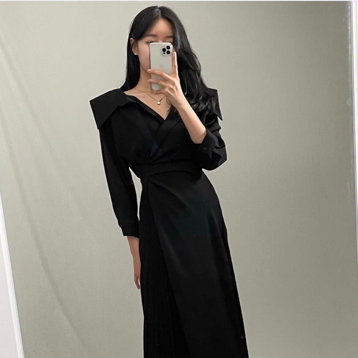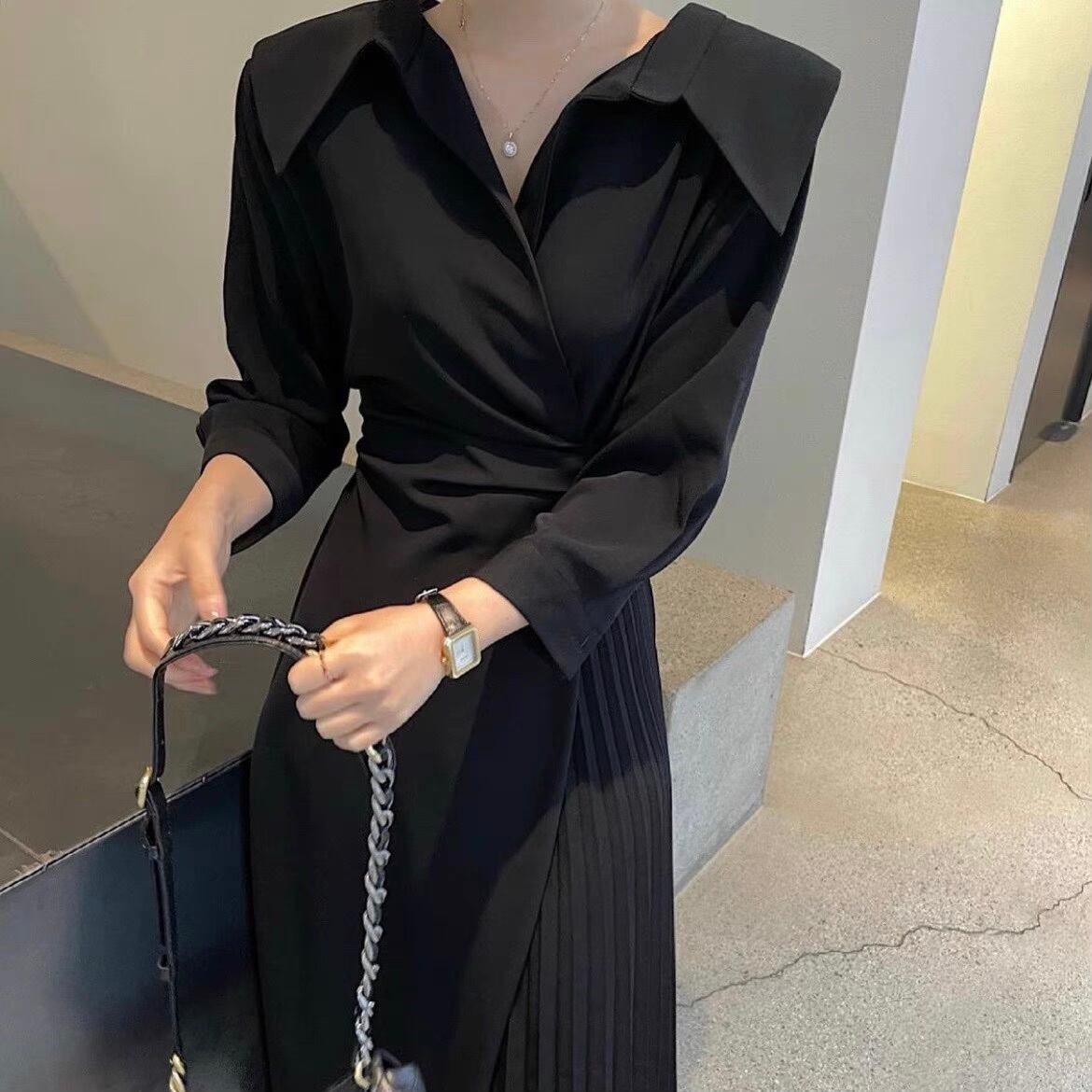 エレガントに差がつくカシュクールデザインのシャツワンピース。