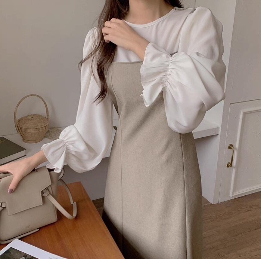 S /肩幅 35 /バスト 100 /袖丈 60 /着丈 56 /バスト(スカート) 90 /スカート丈 92
