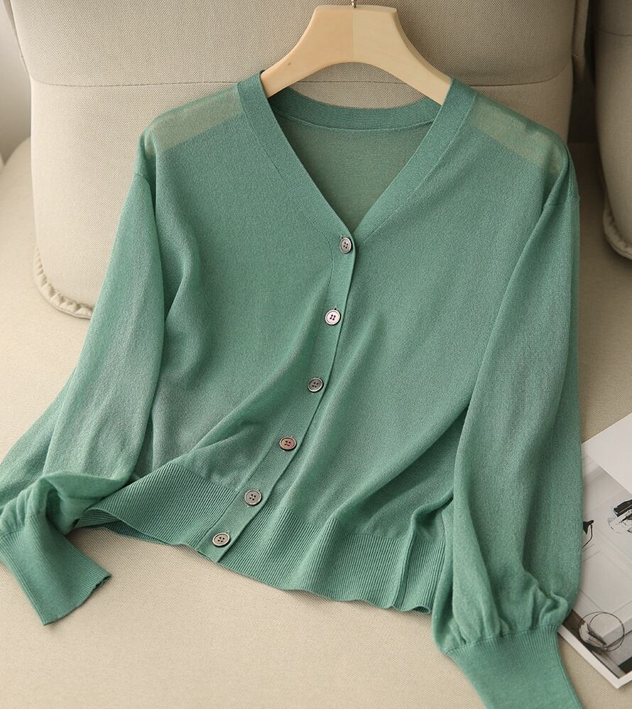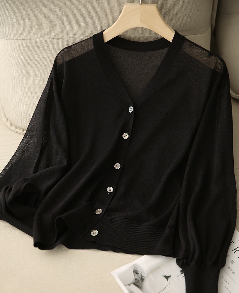 マトンスリーブとVネックデザインが特徴で、ミディアム丈の前開きボタンが上品な印象を与えます。