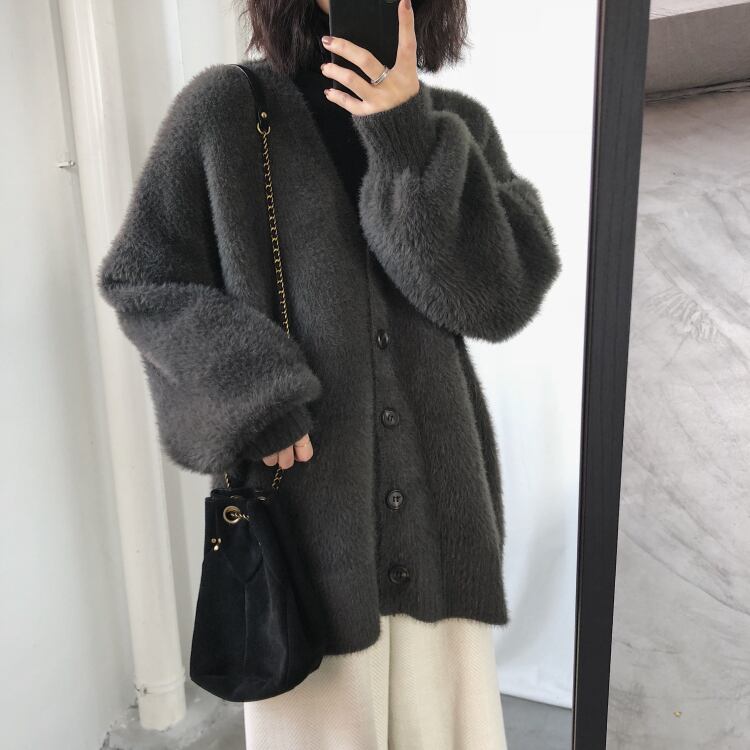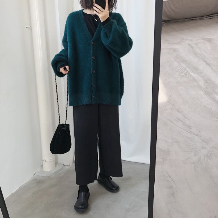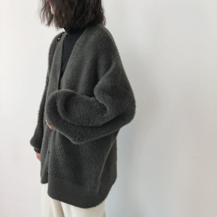 秋冬のコーディネートにぴったりな、長袖のVネックカーディガン