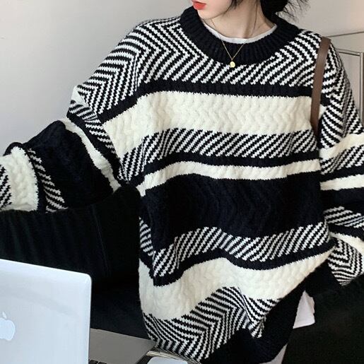 柄×無地×編み模様とシンプルな中にデザイン性がある、オシャレアイテムです。
