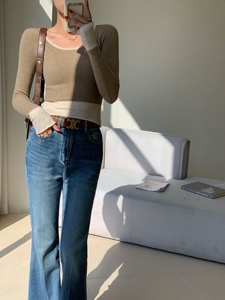 大人可愛い印象を高める、シンプルでスタイリッシュなレディースニットセーターです。