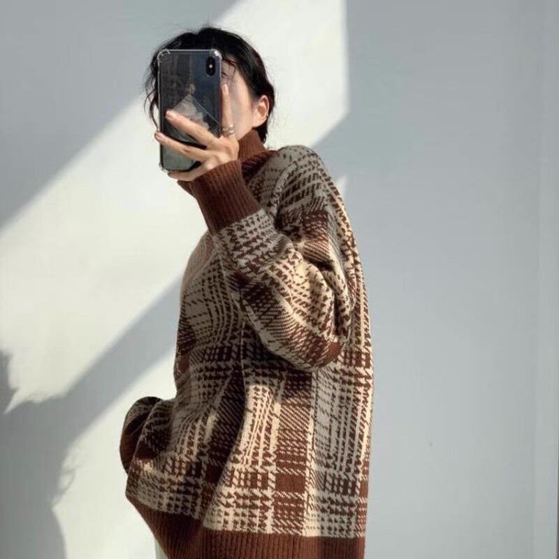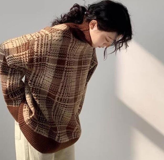 チェック柄×タートルネックでレトロかわいいトレンド感をひとさじプラス。