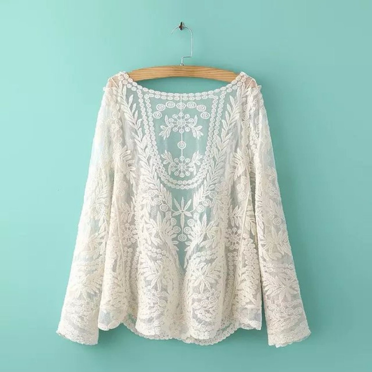 透け感×レース刺繍がナチュラル大人可愛いカーディガン。