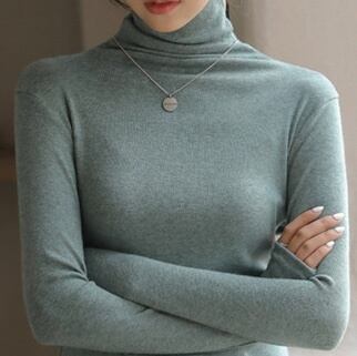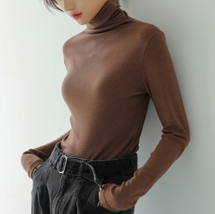 タイトなシルエットが魅せるスマートで大人可愛いハイネックニットカットソー。