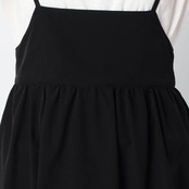 また、ウエスト切り替えのギャザーがドレープ感を作り、Aラインシルエットがスタイルアップ見えにも◎。
