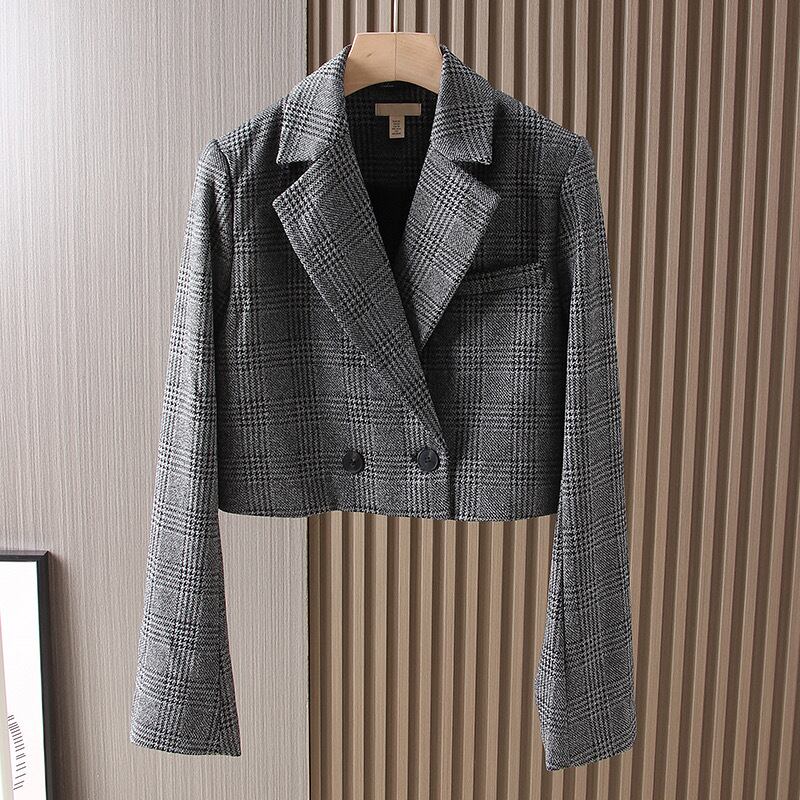 韓国シックなグレンチェック柄のスーツ2点セット。