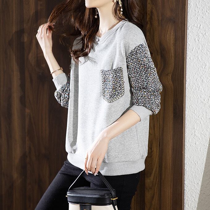 きれいめカジュアルな切り替えデザインスウェットトップス。
