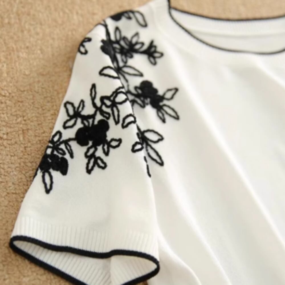 上品さとフェミニンさを兼ね備えた、レディース トップス ニット 半袖 ラウンドネックが新登場!Iラインのシルエットは、夏のおしゃれを引き立てる主役級アイテム。薄手の生地と花柄デザインは、爽やかさと女性らしさを演出し、オフィスやビジネスシーンはもちろん、母の日のギフトやミーティング、さらにはお出かけやリゾートでの休日まで幅広く活躍します。