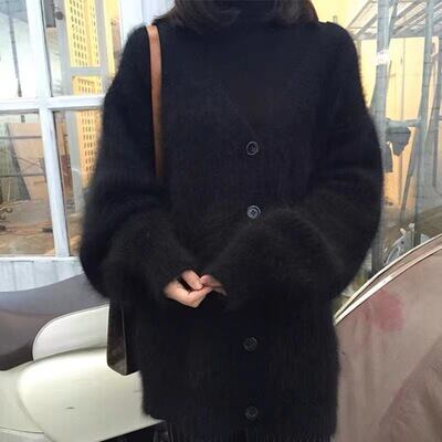 長袖で、Vネックのミディアム丈は、シンプルながらも上品な印象を与えます。