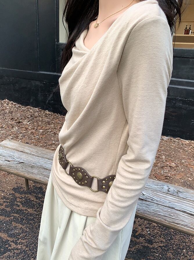 この長袖ミディアム丈のプルオーバーは、シャーリングデザインのウエストマークが特徴。
