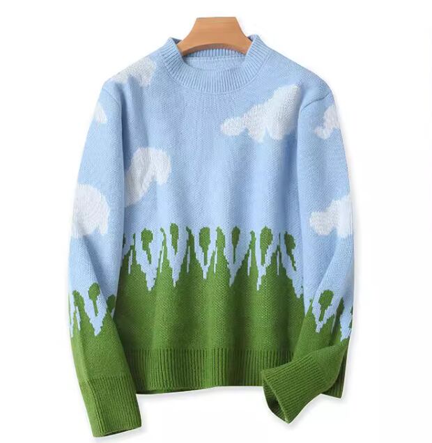 ふんわり雲柄が印象的な、ニットプルオーバー
