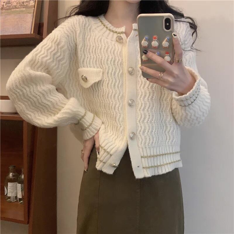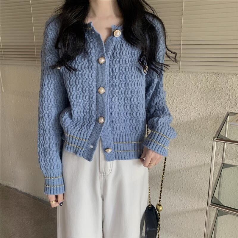 パールボタンが上品なアクセントに大人可愛く着こなせるカーディガン。