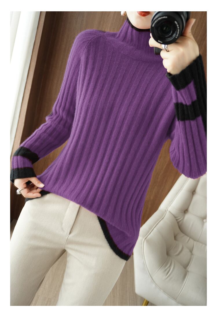 このセーターは、長袖のタートルネックデザインで、ミディアム丈のプルオーバーとなっています。