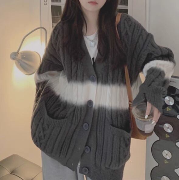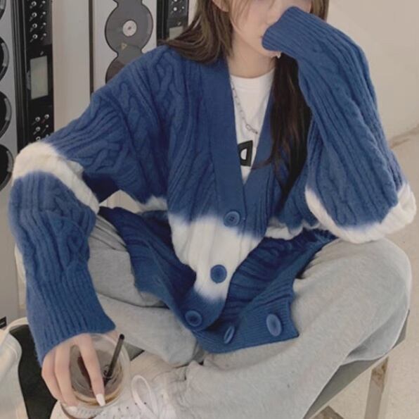 タイダイ柄が映えるルーズなシルエットのVネックカーディガン。