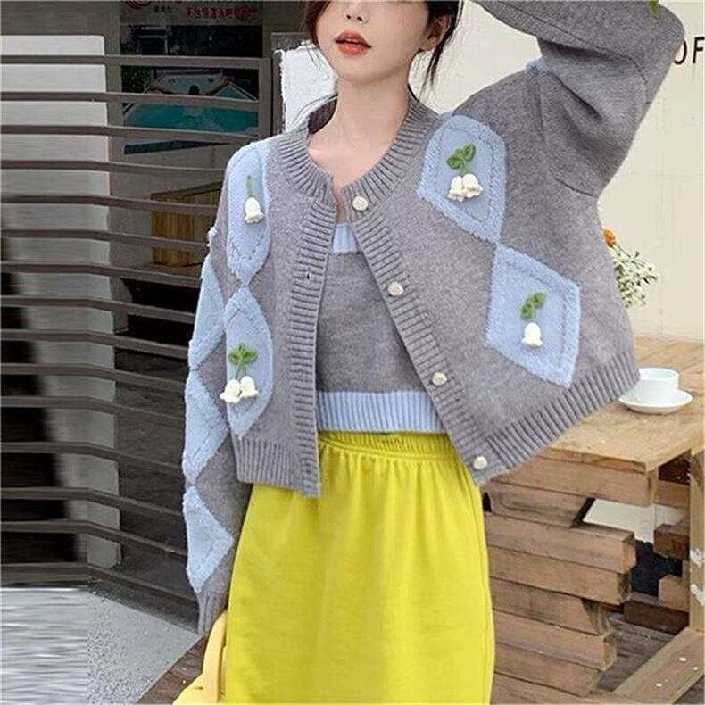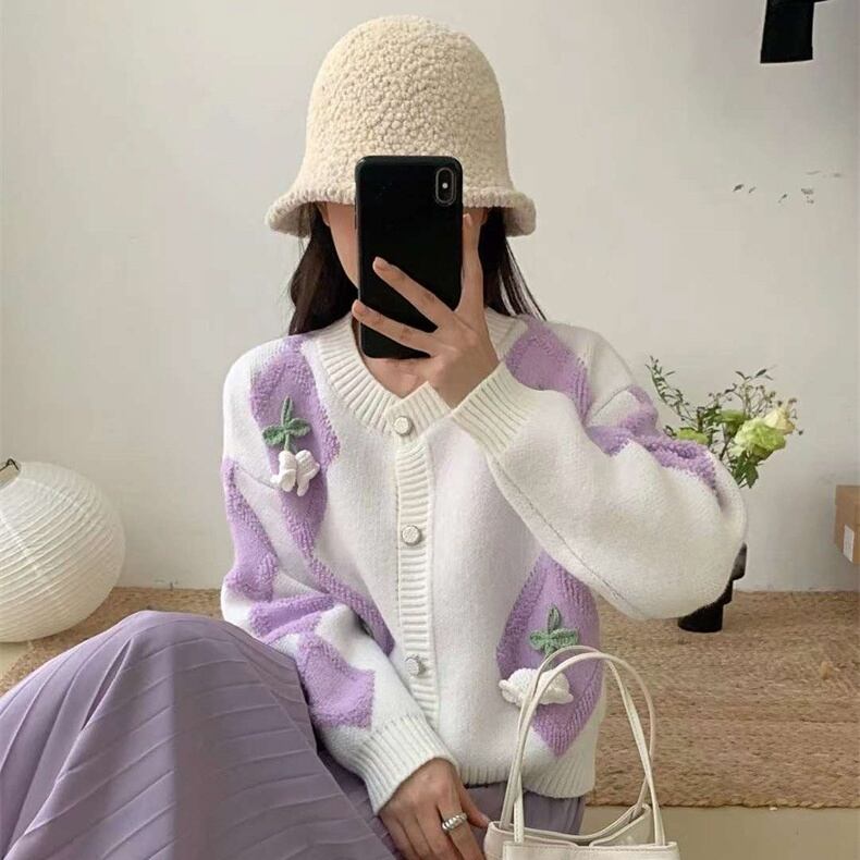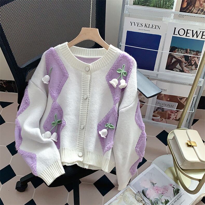 可愛らしい立体的なフラワーが魅力のニットカーディガン。
