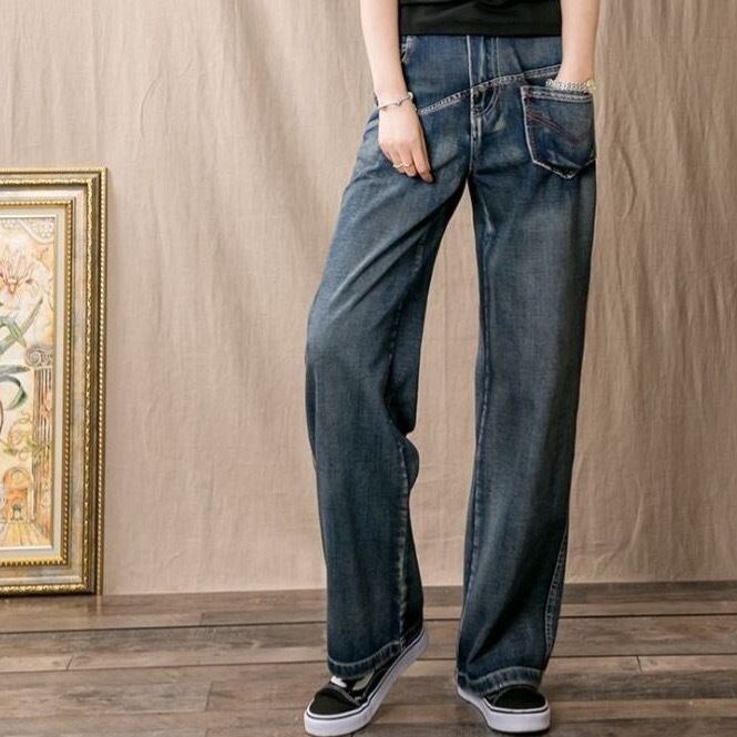 ヴィンテージライクなカジュアルワイドジーンズ。