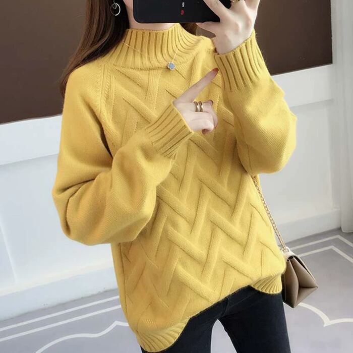 シンプルでありながら存在感のあるハイネックニットセーター。