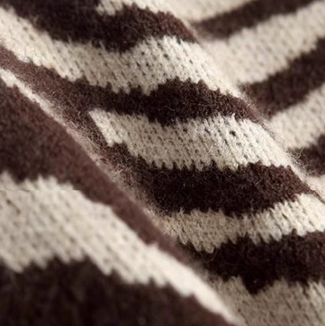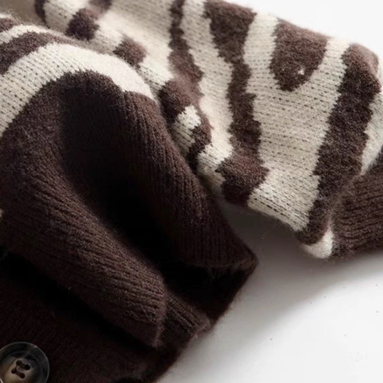 セブラ柄がアクセントのVネックカーディガンでワイルド&エレガントな印象に。