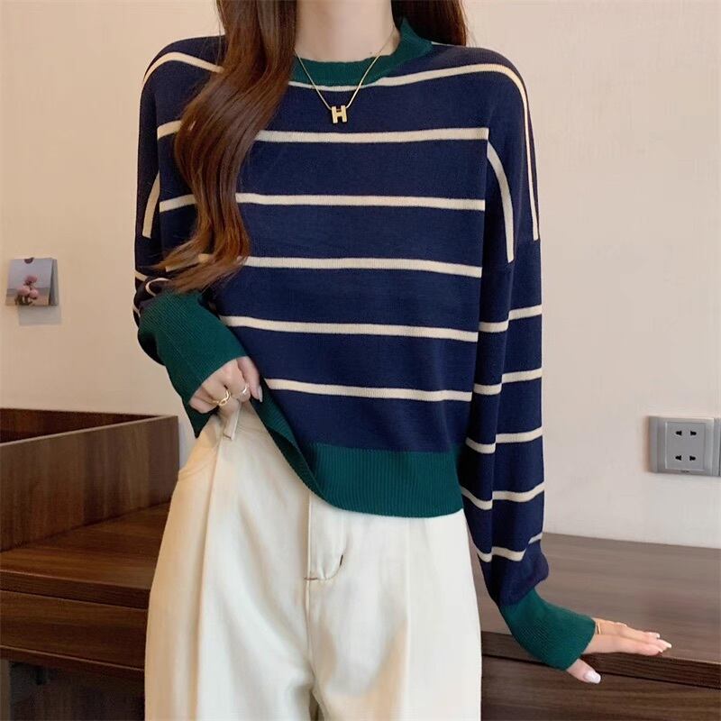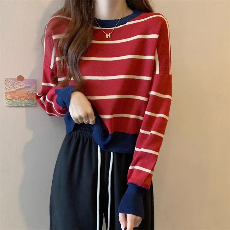 トリコロールの配色が映える大人可愛いオーバーサイズニット。