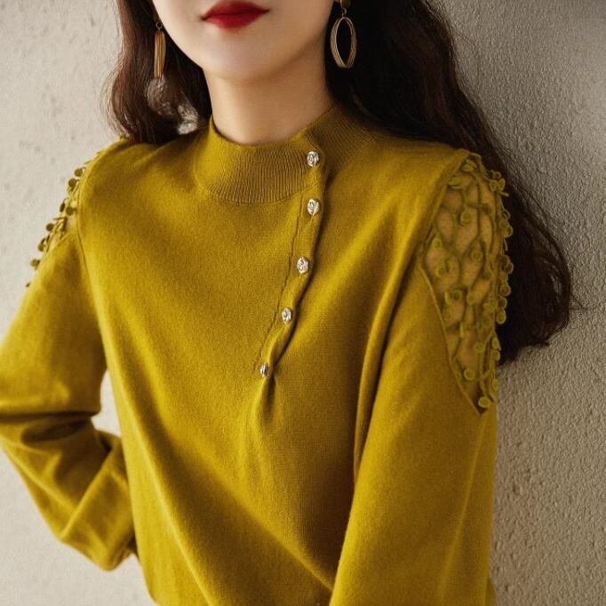 長袖のバルーン袖が特徴で、ショルダー部分のシースルーなデザインは柔らかな印象を与えます。ラウンドネックは品のあるシンプルさを演出し、見頃のスリムで細身のシルエットが、あなたの魅力を引き立てます。アシンメトリーデザインのボタン配置が、大人エレガントなスタイルを実現。普段使いからデート、女子会、お出かけまで幅広いシーンでの着回しが可能です。