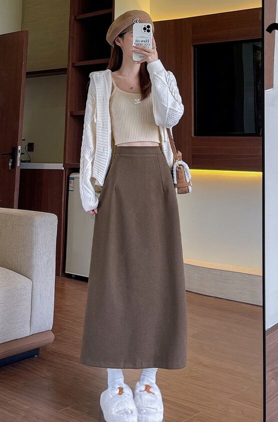 Aラインとストレートの絶妙なバランスが美しいシルエットを作り出し、バックスリットがさりげない抜け感を演出します。