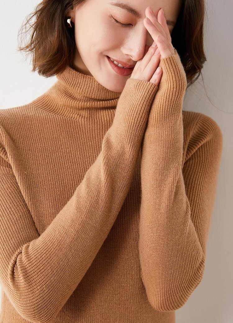 ニットソー 長袖 タートルネック