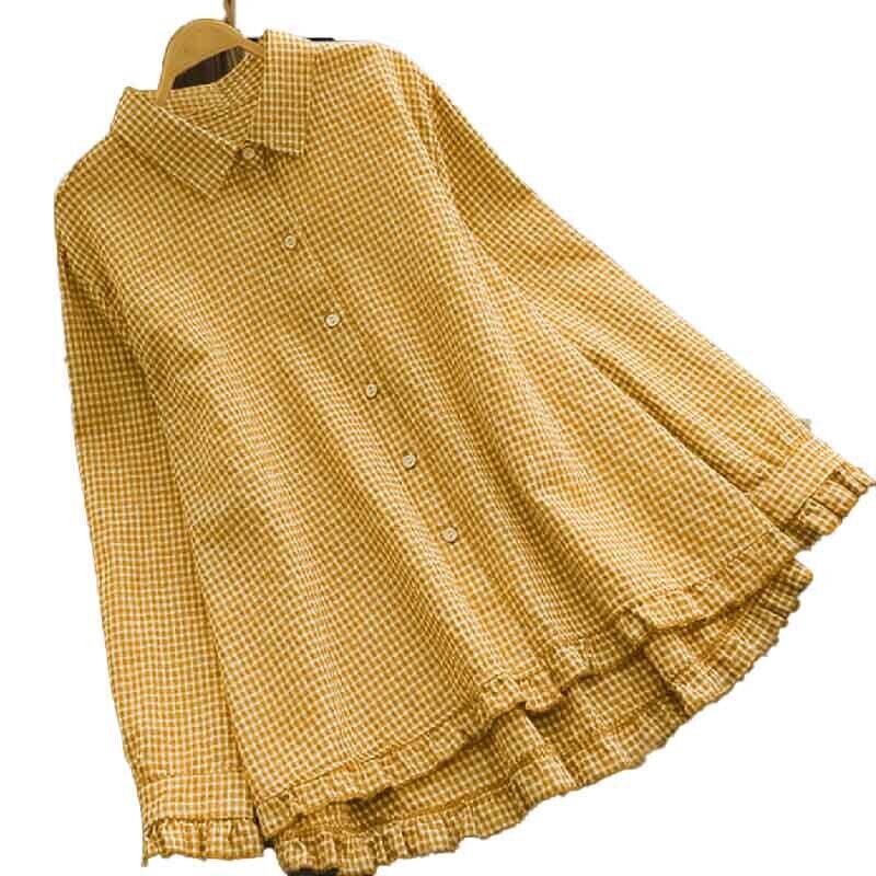 レディース トップス シャツ 長袖 襟付き フリル チェックが登場!