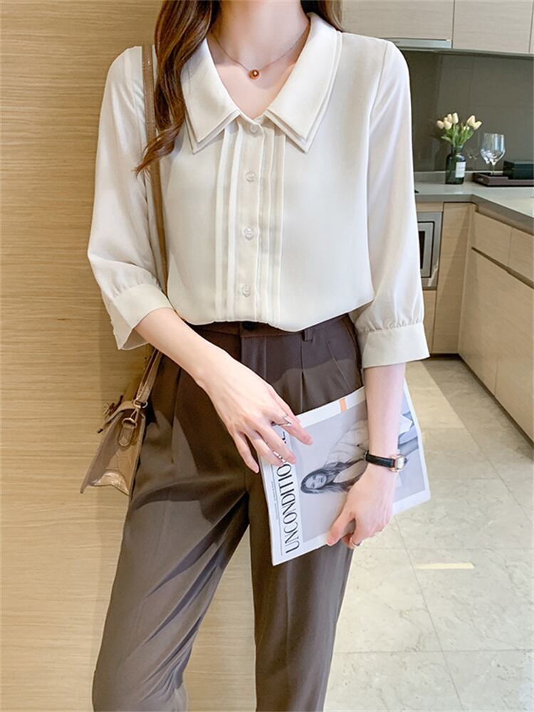 大人可愛い印象のレディース七分袖シャツをぜひお試しください!