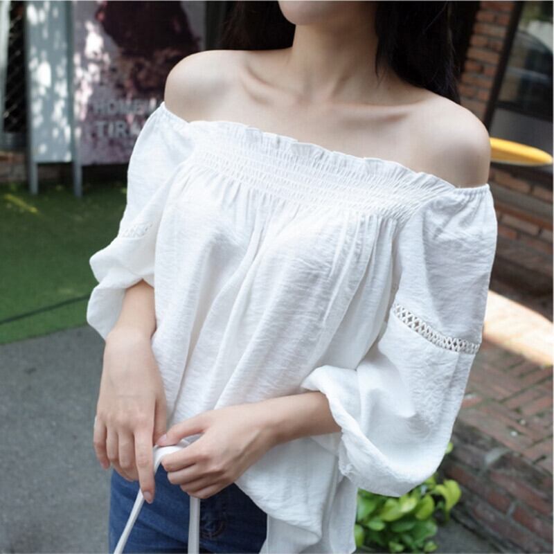 7分袖とボリューム袖がポイントとなり、ラウンドネックのオフショルダーは洗練された印象を与えます。