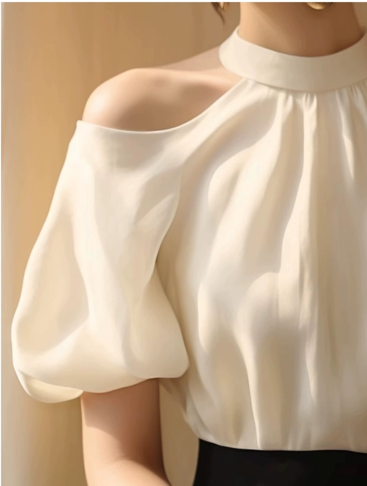 ボリューム袖とミディアム丈が組み合わさって、洗練された雰囲気を演出。