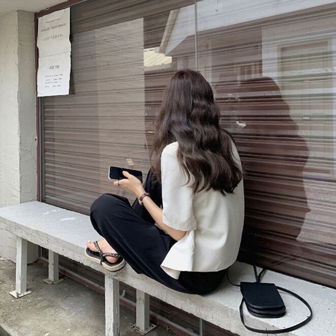 ゆったりとしたシルエットで体系カバーも叶えてくれます。オープンカラーでラフさの中にもきちんと感のある1枚です。袖口も広く通気性抜群で夏でもさらりと着こなせます。