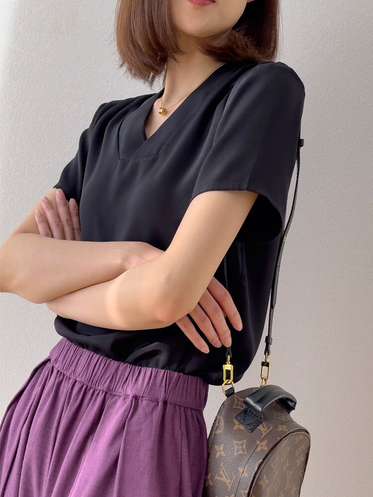 この半袖VネックTシャツは、シンプルでありながらも抜け感のあるスタイルが大人可愛い魅力を引き立てます!