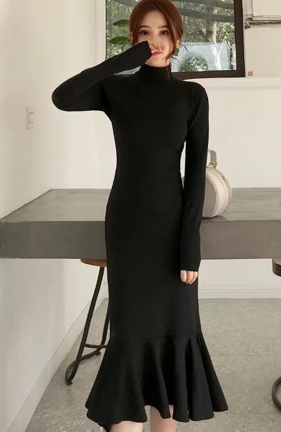 タートルネックデザインが首元をすっきり魅せ、ロング丈と長袖が秋冬の寒さから守りつつ、大人の上品さを引き立てます。
