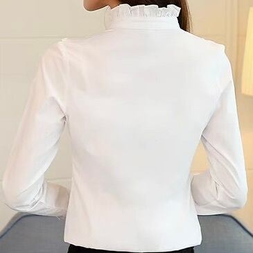 フリルがたっぷり施されたクラシカルなブラウスで上品で可愛らしい印象に。