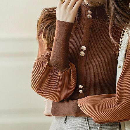 フェミニンガーリーな主役級アイテムのパフスリーブリブニット。